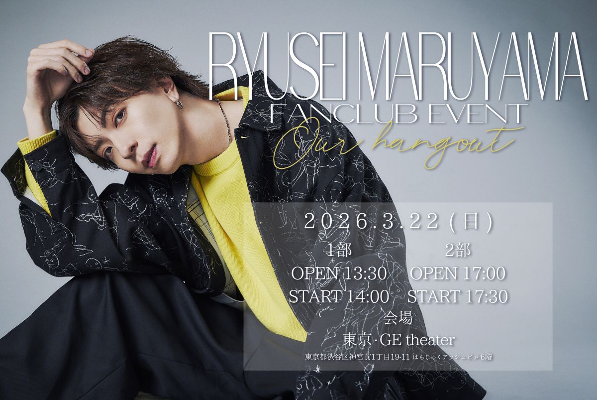 3月22日(日)東京・GE Theaterにて丸山龍星初のファンクラブ会員限定イベント「RYUSEI MARUYAMA FANCLUB EVENT〜Our hangout〜」の開催が決定しました!!